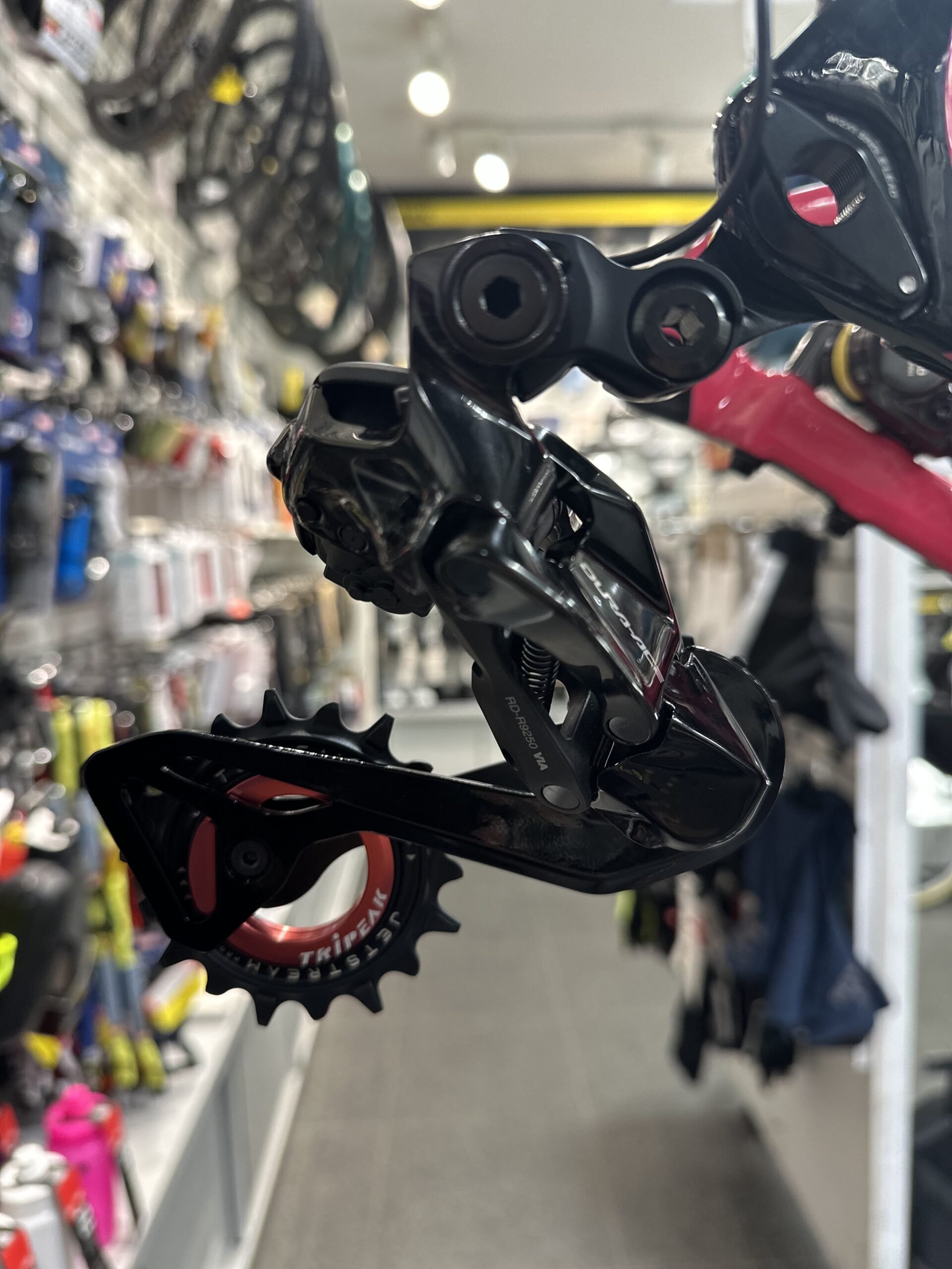 クランク関連パーツを全て一体化させ、フロントディレーラーと共に装着致しました😄