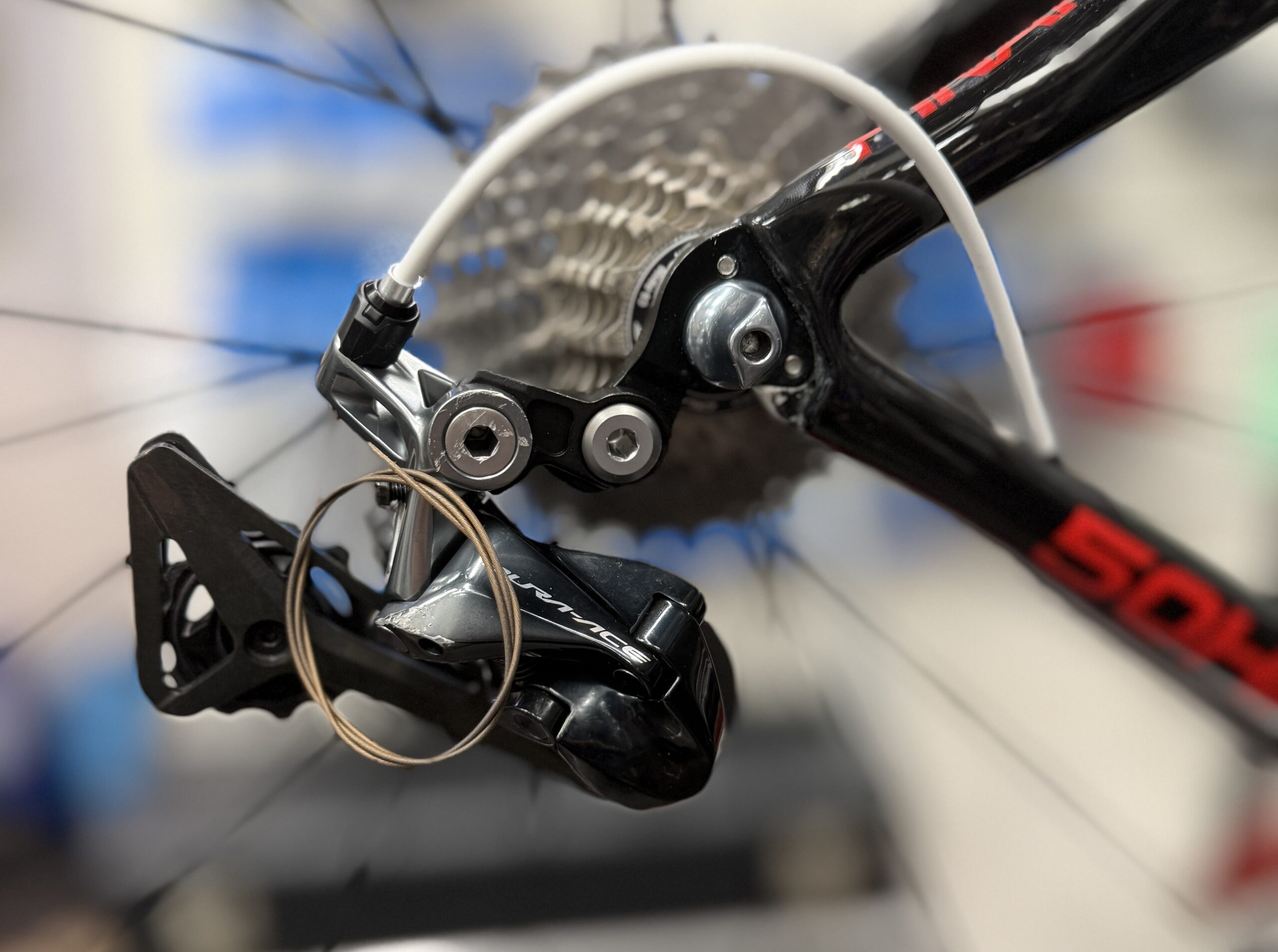 アウターケーブルはバイクフレームのカラーに合わせてホワイトです🚵♂️