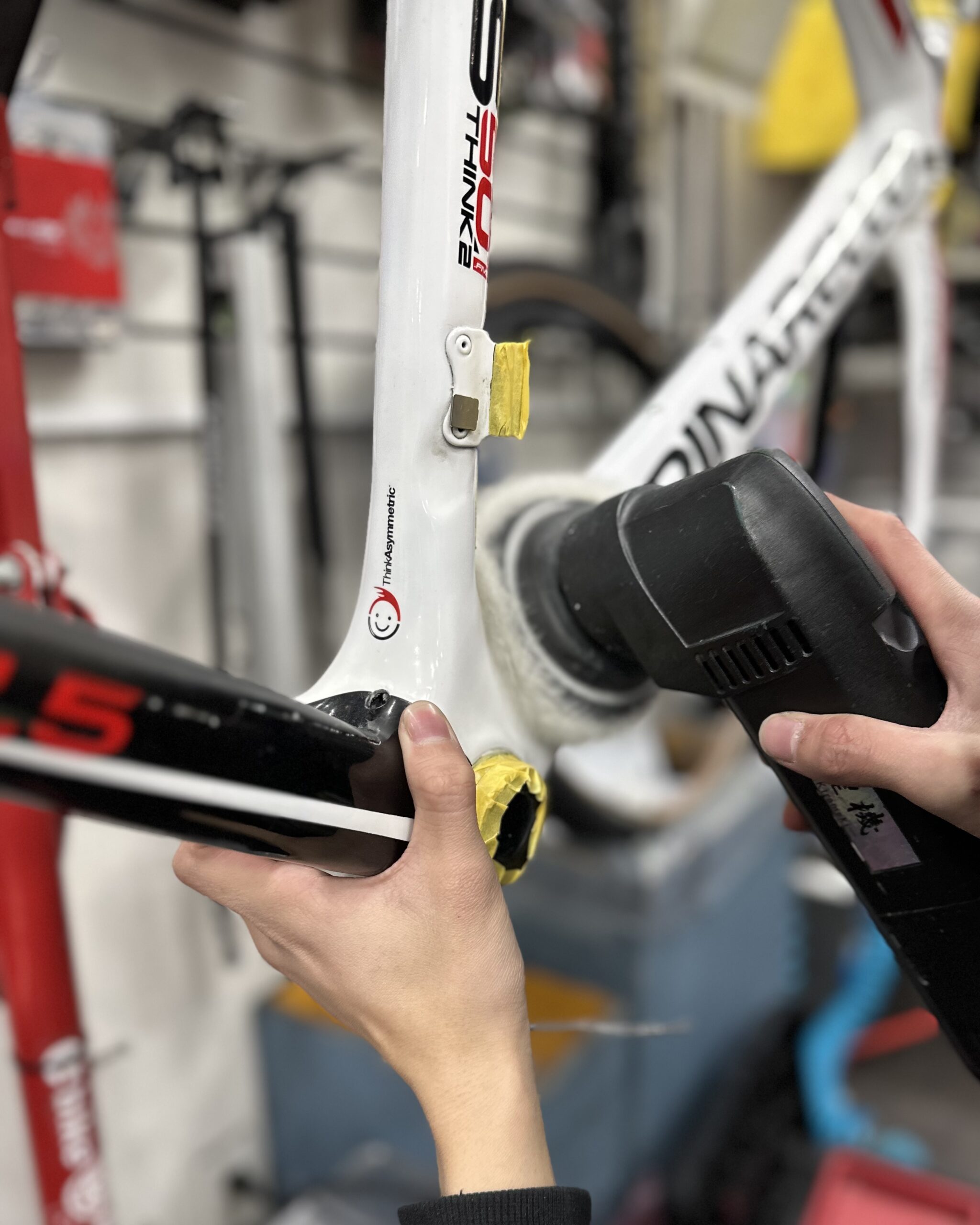 フレーム状態からしっかりとポリッシャーで仕上げ、新車状態に近い艶を復元させます❗️