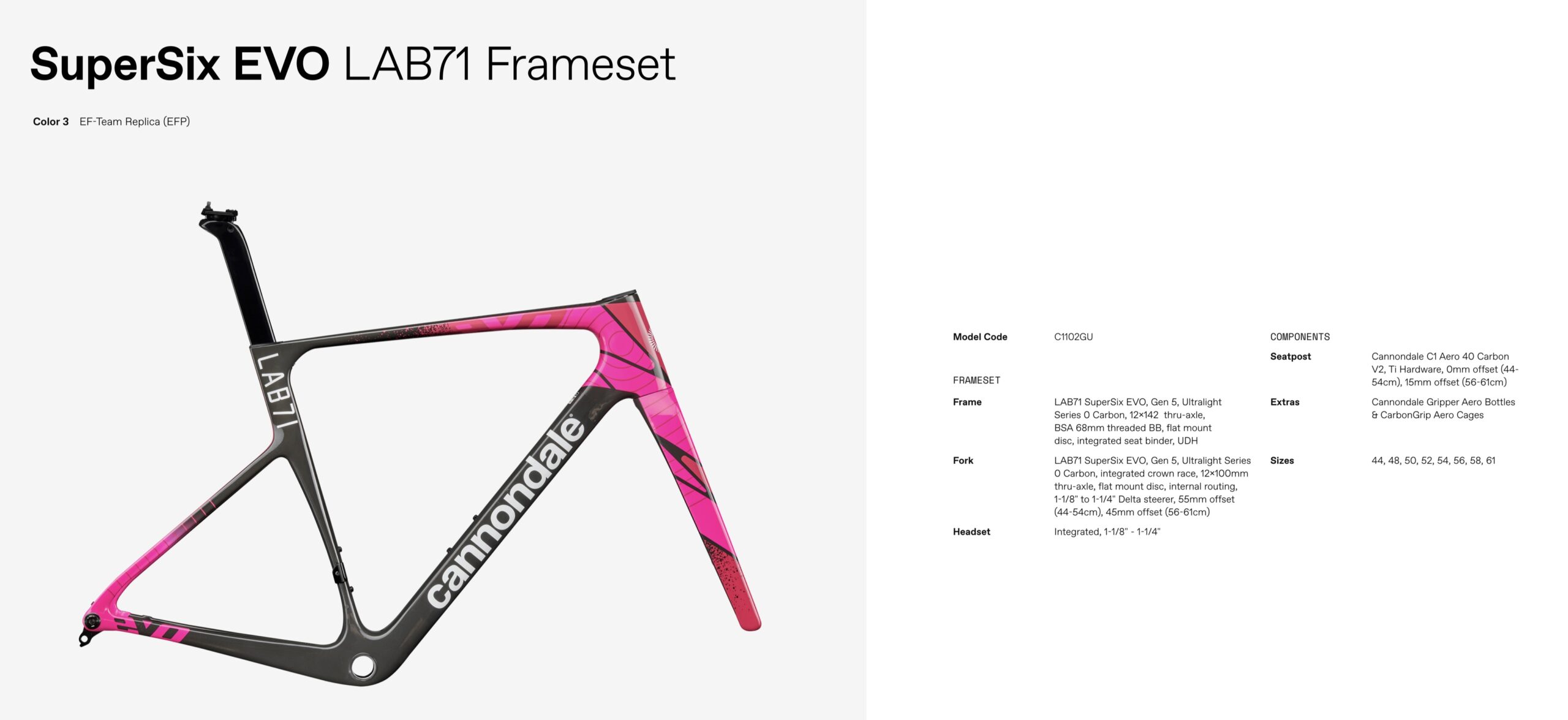以上がSuperSix EVOのエアロモデル完成車とフレームのラインナップでございます!