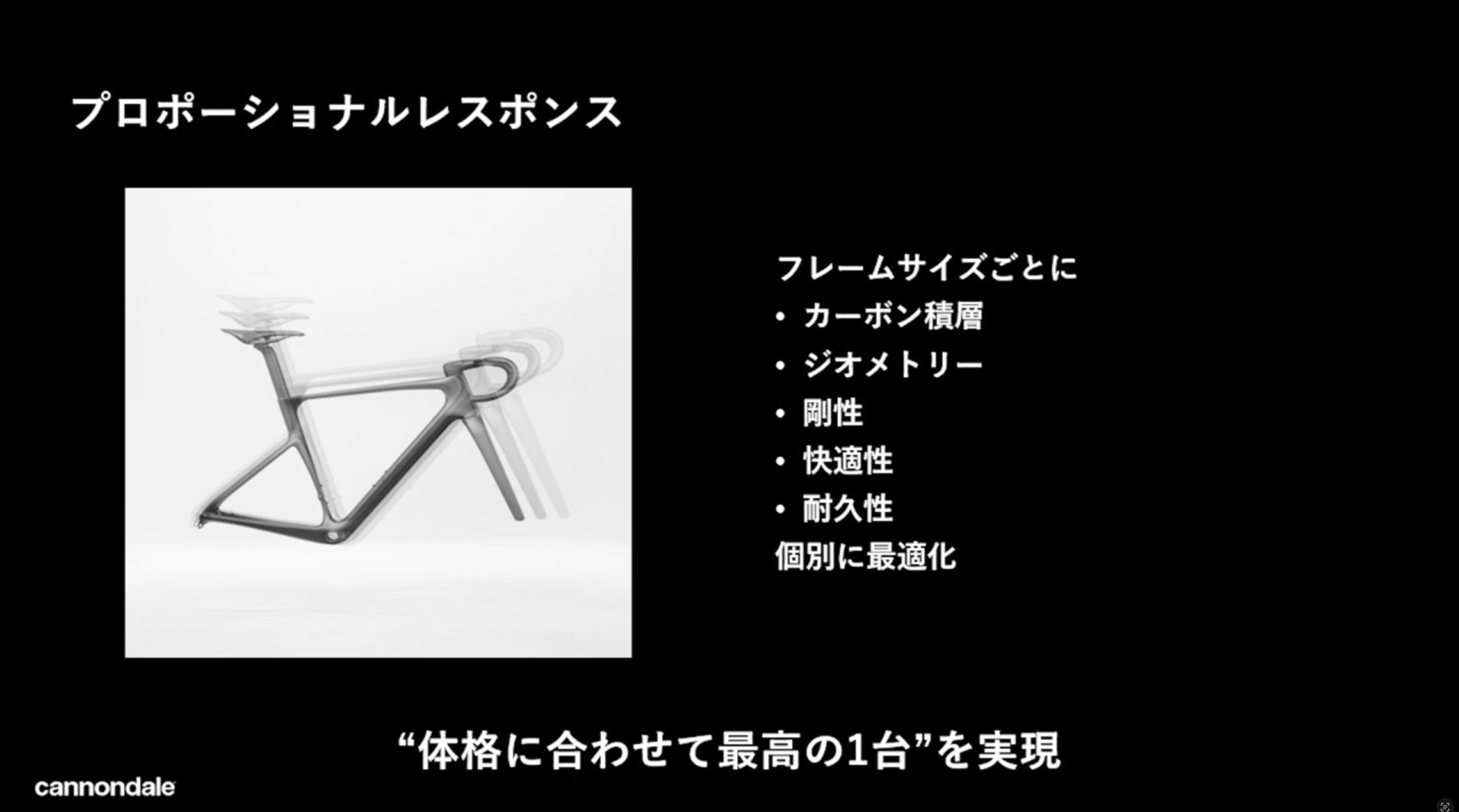 さらに、フレームサイズごとにカーボンの積層やジオメトリーを最適化することにより
