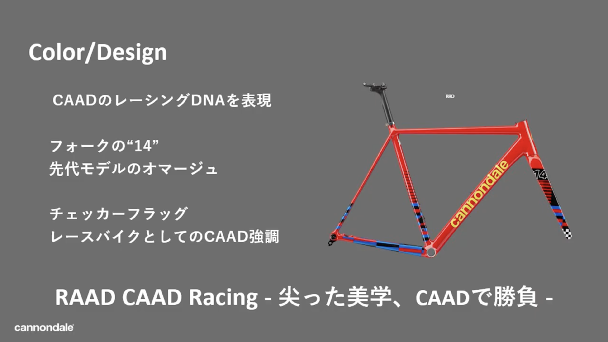 レースバイクとしてのCAADを強調し、尖った美学で勝負するという思いを表現しています!