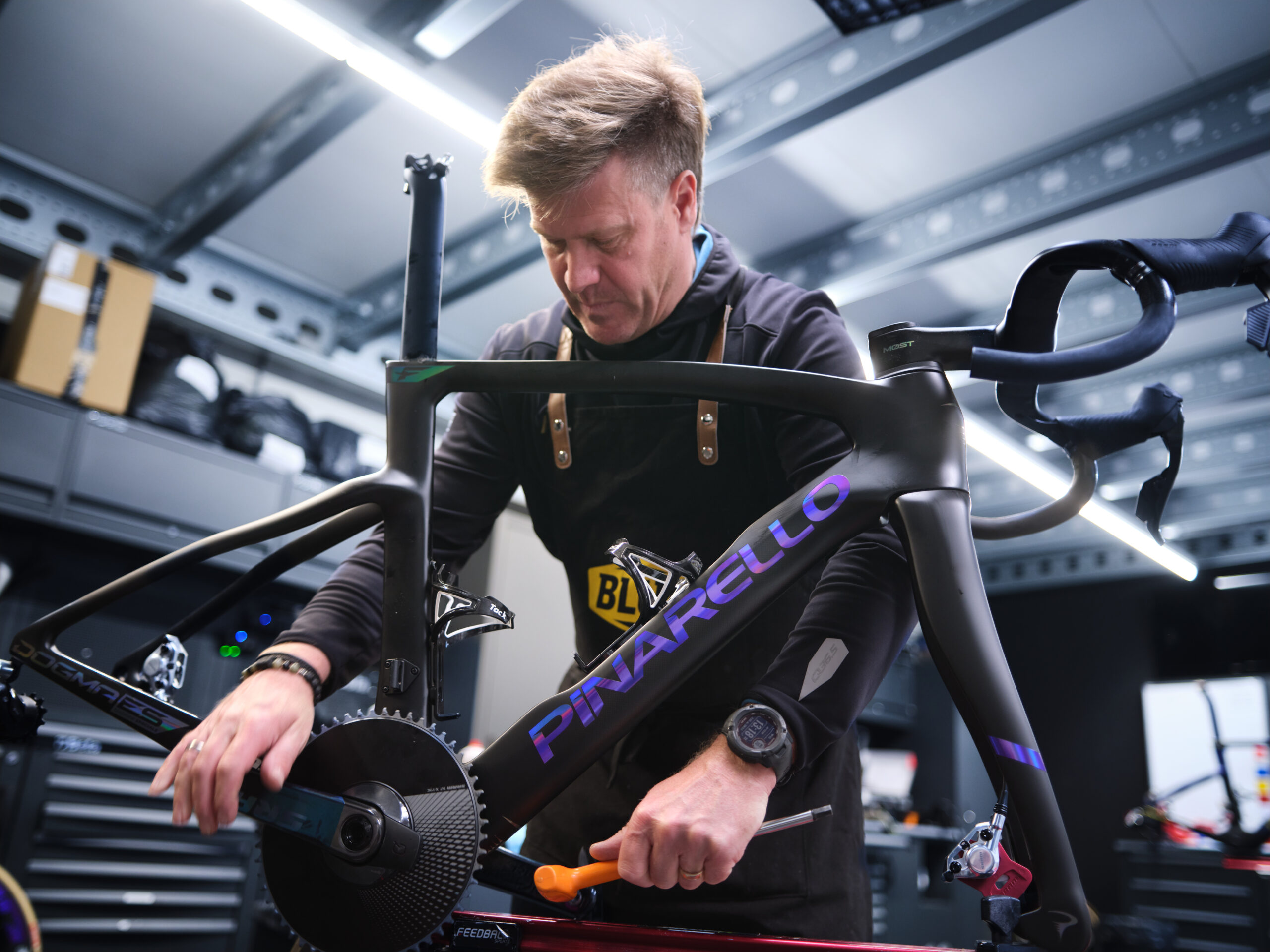 ケースにはピナレロシグネチャーが刻印され、随所にバイクブランドのアイデンティティが織り込まれた構成です!