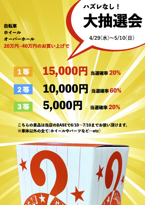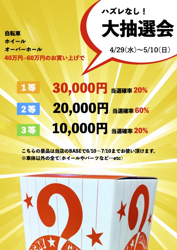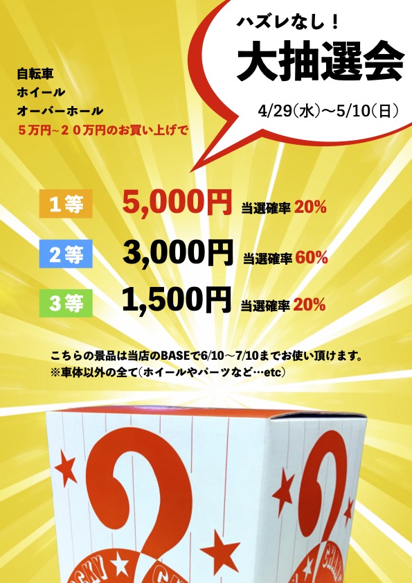 ※抽選には購入頂いた価格に対して当選金額が異なります⚠️